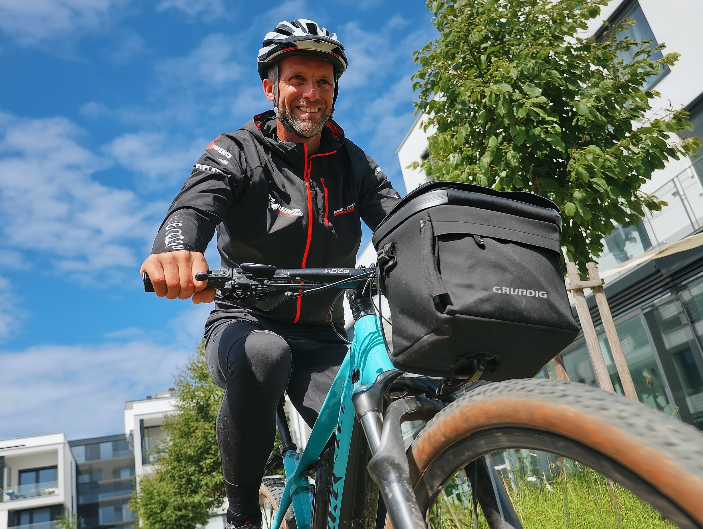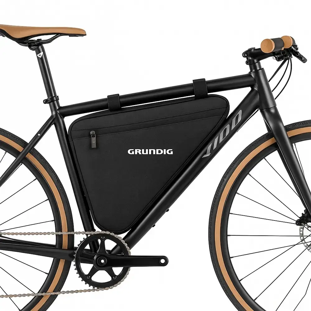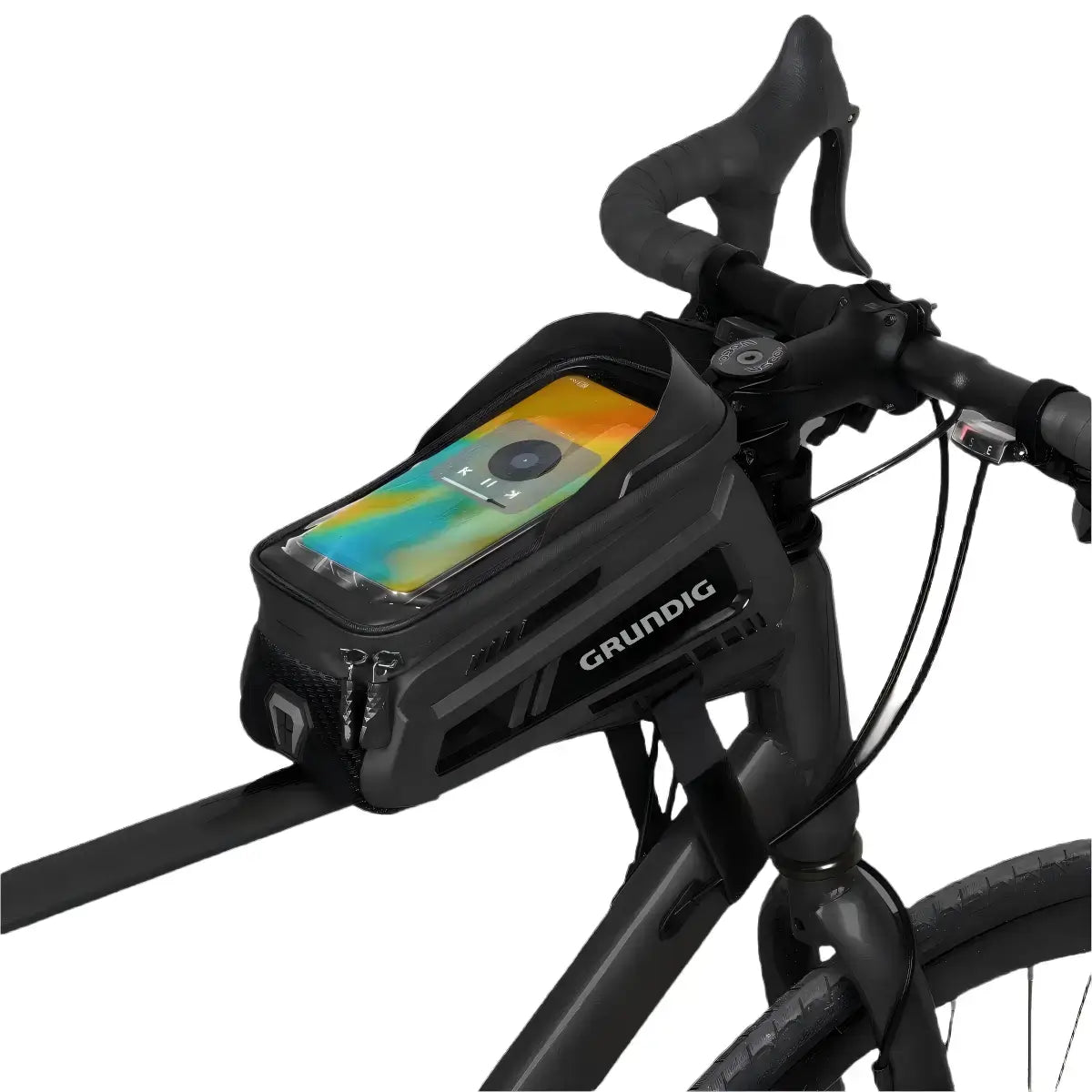 Lernen Sie die wasserdichte Grundig-Lenkertasche mit Schnellverschluss und Touchscreen-Handyhalterung kennen.