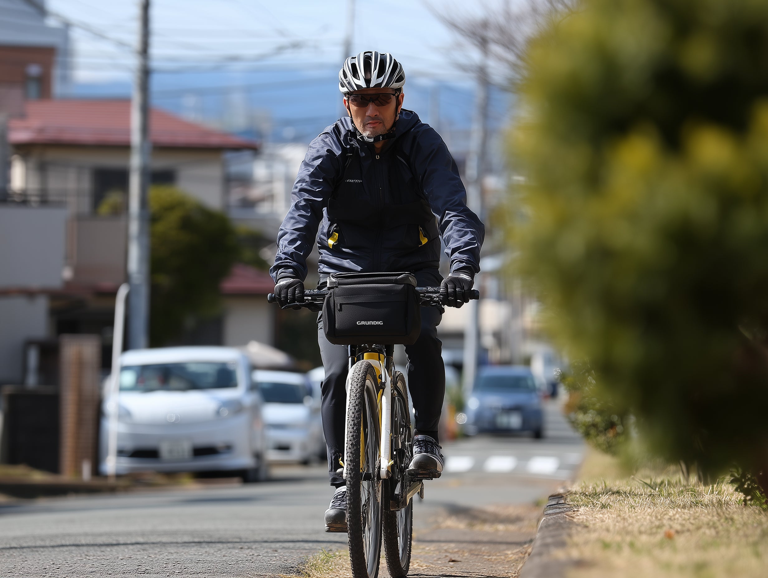 Lernen Sie die wasserdichte Grundig-Lenkertasche mit Schnellverschluss und Touchscreen-Handyhalterung kennen.
